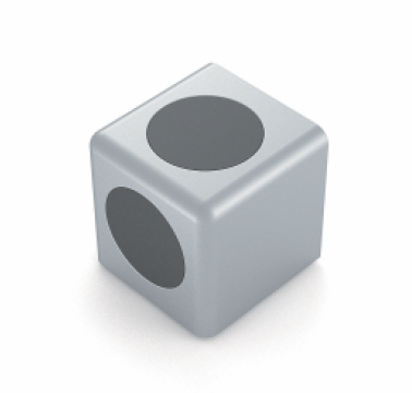 Łącznik kostkowy 2D to kompaktowy i uniwersalny element konstrukcyjny przeznaczony do łączenia dwóch profili aluminiowych pod kątem prostym w dwóch płaszczyznach. Idealny do budowy przestrzennych ram, szkieletów i narożników w systemach modułowych.
