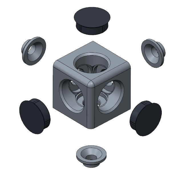 Łącznik kostkowy 3D to kompaktowy i uniwersalny element konstrukcyjny przeznaczony do łączenia trzech profili aluminiowych pod kątem prostym w trzech płaszczyznach. Idealny do budowy przestrzennych ram, szkieletów i narożników w systemach modułowych.