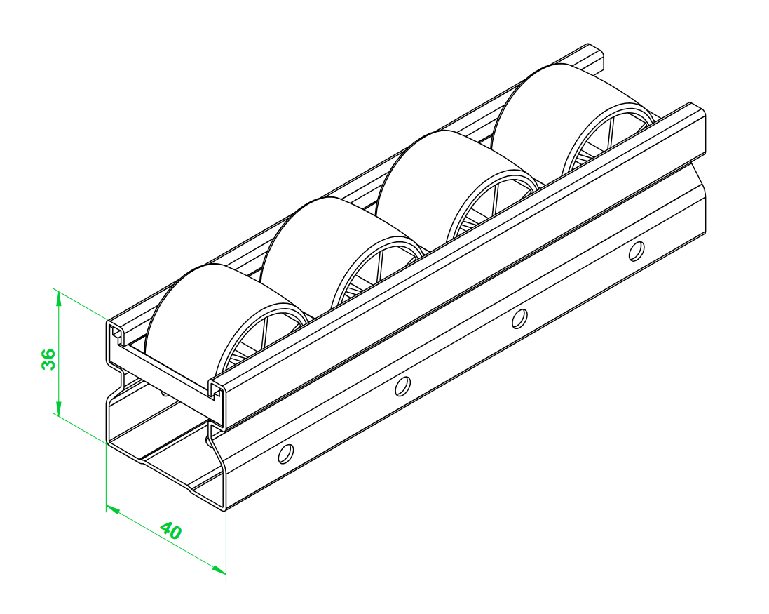 Listwa rolkowa LR-4D-40 to rozwiązanie oparte na profilu stalowym ocynkowanym. Dzięki temu uzyskujemy wysoką wytrzymałość, odporność na korozję oraz łatwość montażu.