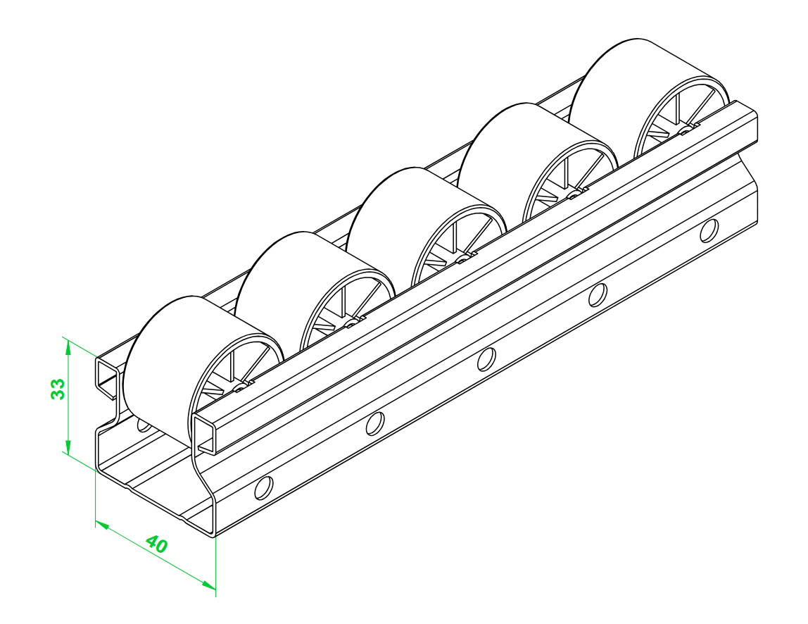 Listwa rolkowa LR-4A-40 to rozwiązanie oparte na profilu stalowym ocynkowanym. Dzięki temu uzyskujemy wysoką wytrzymałość, odporność na korozję oraz łatwość montażu.
