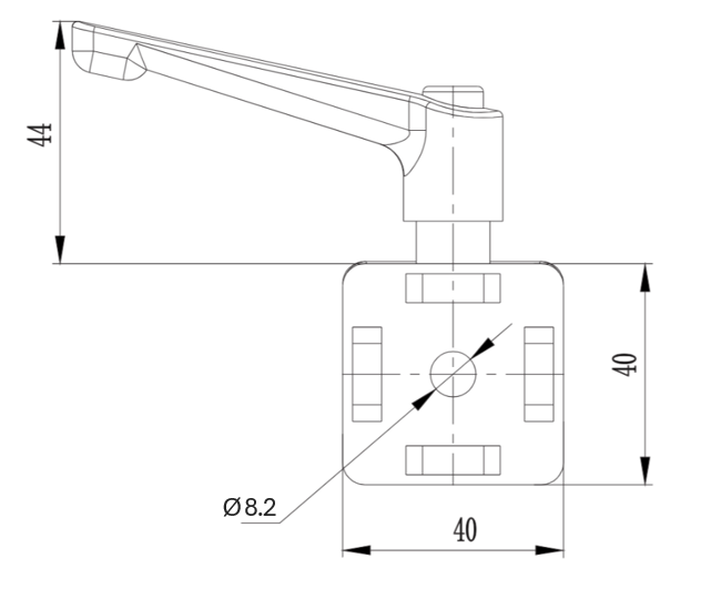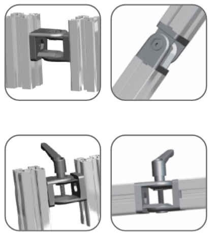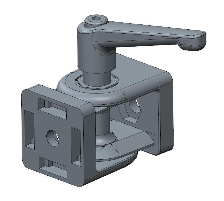 Przegub 40×40 z dźwignią zaciskową wykorzystujemy przy połączeniach przegubowych. Dźwignia pozwala na blokadę pozycji. Używany w kanale 8 oraz 10 mm.