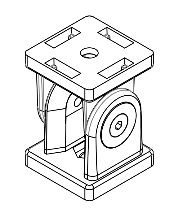Przegub BG-45×45 służy do montażu dwóch profili aluminiowych lub innych elementów które wymagają ruchu obrotowego względem osi. W zestawie znajdują się kamienie które wchodzą w kanał 8 lub 10 mm.