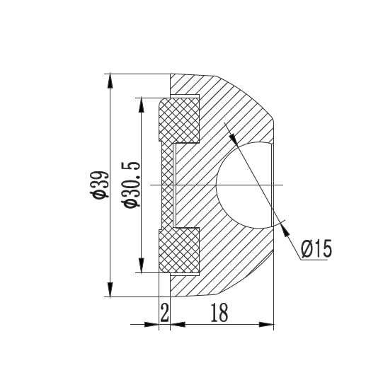Podstawa: tworzywo sztuczne Ø39 mm z podkładką antypoślizgową