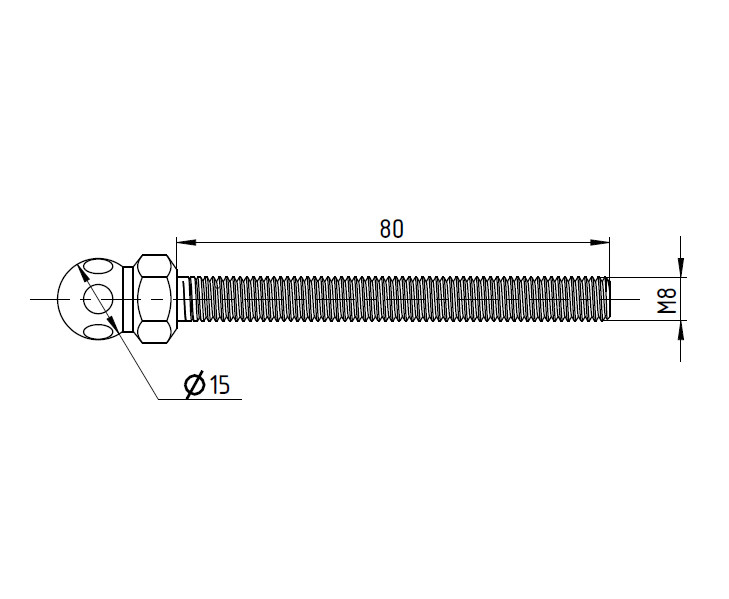 Trzpień: gwint M8, długość 80 mm + nakrętka
